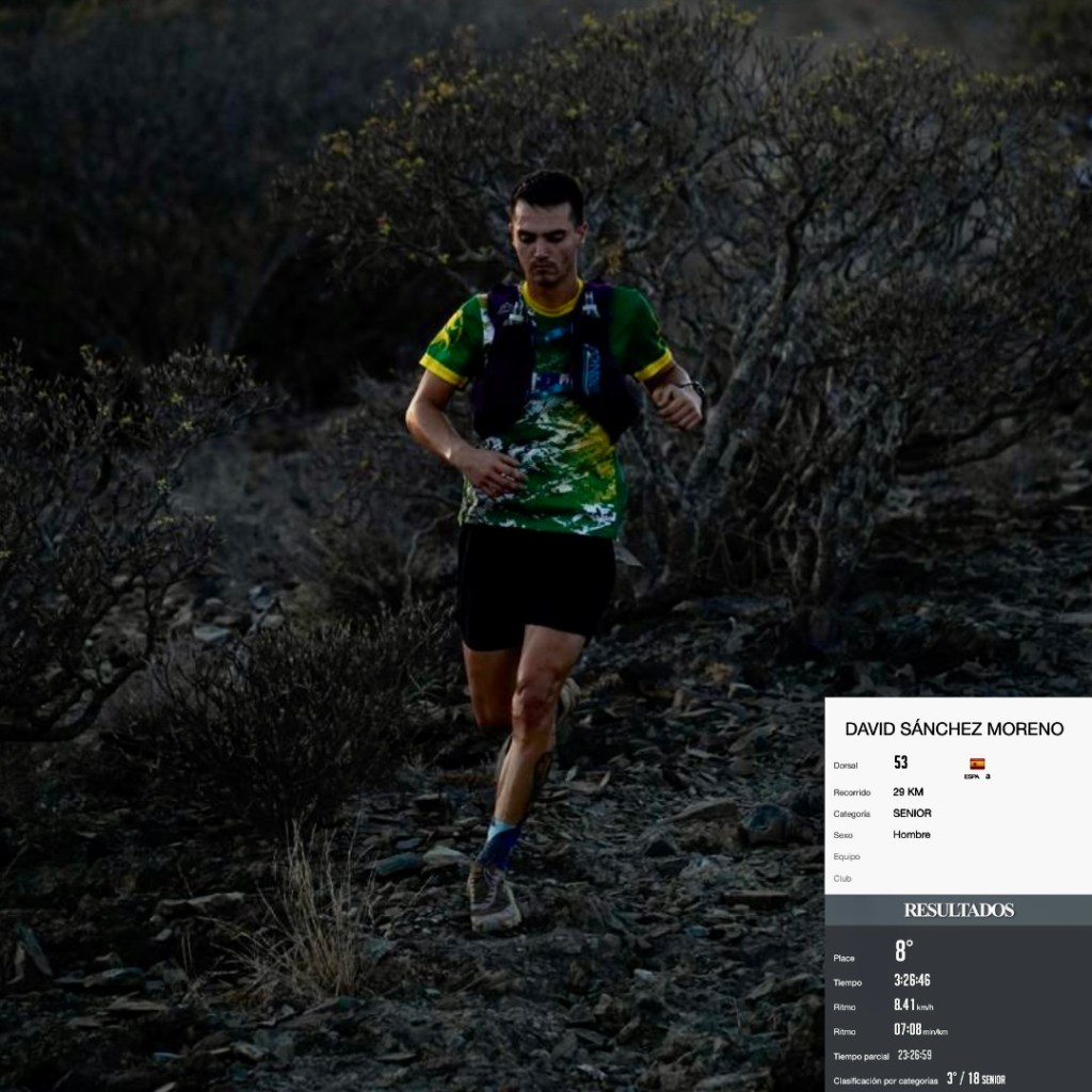 - David Sánchez; logra un tiempo de 3:26:46, obteniendo un 8º puesto de la general y un 2º puesto de su categoría.